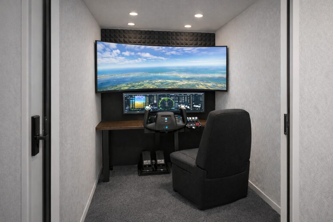 ここは、航空に関わる人、これから関わろうとする人、そして航空に興味を持つすべての方に向けた「学び」と「くつろぎ」が共存する空間です。店内には、落ち着いて作業ができるワーキングスペースに加え、実践的に学べるシミュレータースペースを併設しています。航空関係の勉強や資料作成をその場で行えるだけでなく、ディスパッチルームでは最新の気象情報を確認し、必要に応じて印刷することも可能です。明日の訓練に向けた予習や復習、フライトのイメージトレーニングとして、シミュレーターを気軽に利用することもできます。